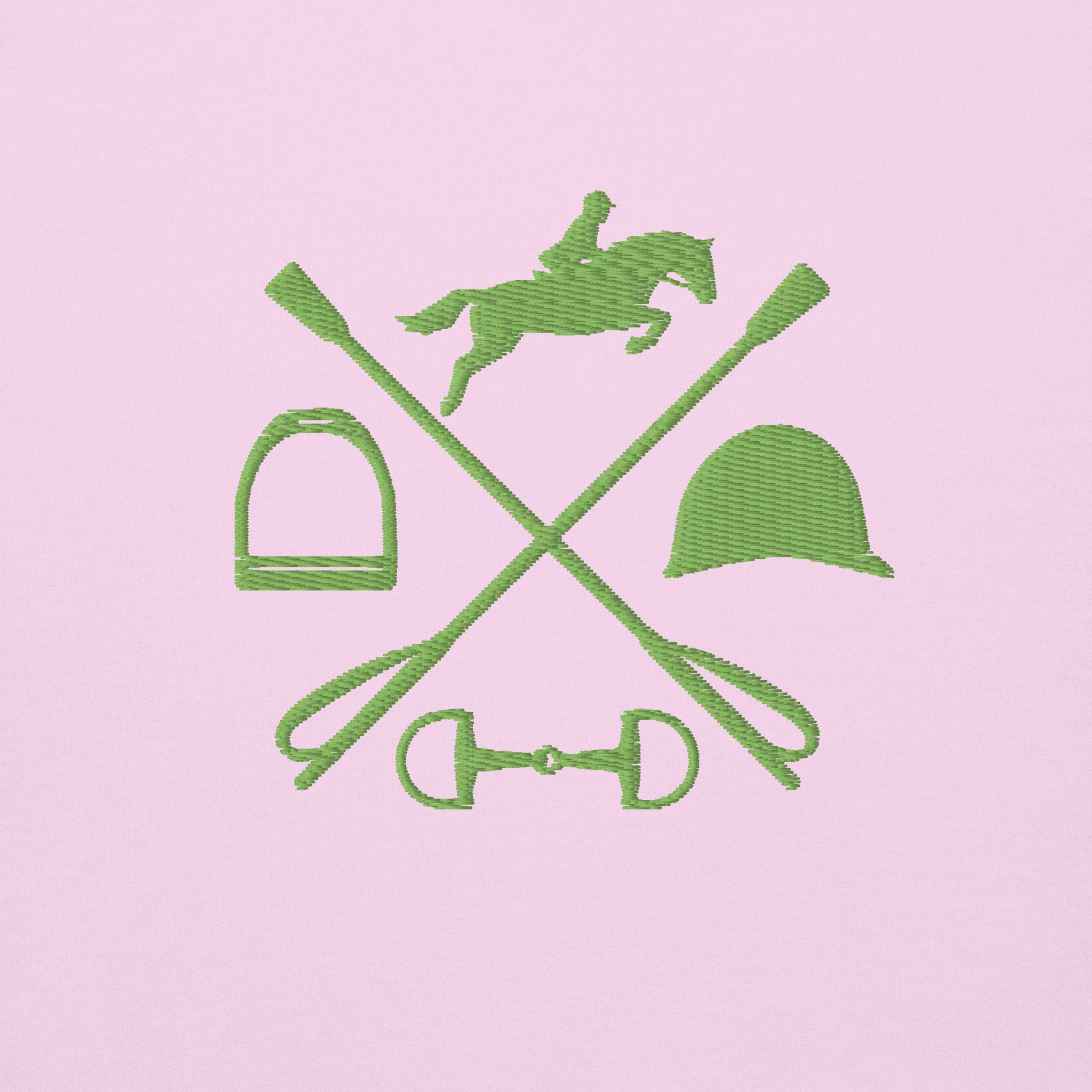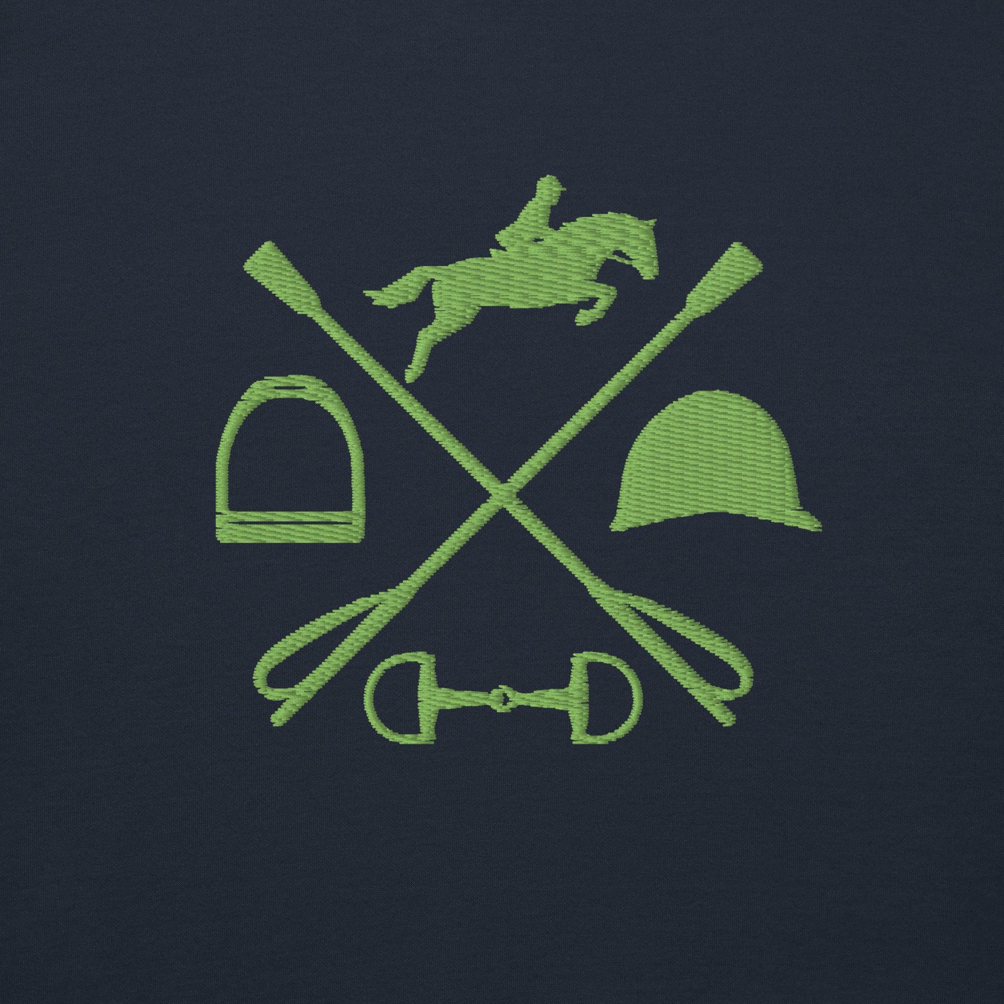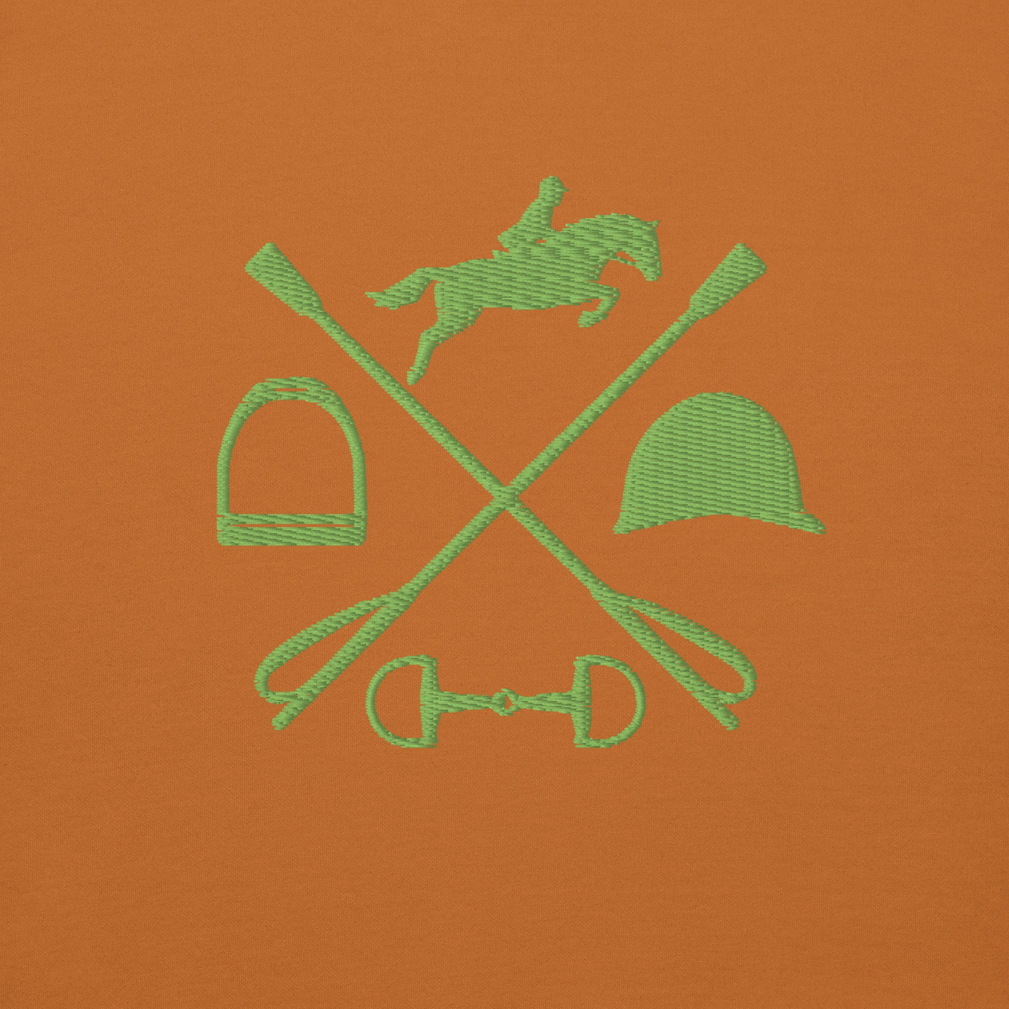 Who knew the softest hoodie you’ll ever own could also be such a clean, powerful tribute to the equestrian lifestyle? This Crossed Crops Equestrian Hoodie features your exclusive minimalist design: a refined arrangement of crossed riding crops paired with classic English riding icons — a jumping horse, a stirrup, a helmet, and a snaffle bit. No text, no clutter… just elegant equestrian symbolism.