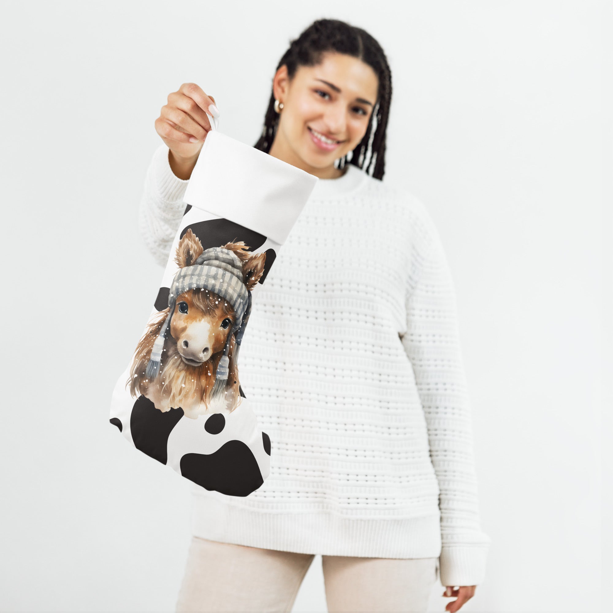 Dieser süße Weihnachtsstrumpf verleiht Ihren Feiertagen einen Hauch von Laune und bäuerlichem Charme. Er ist das perfekte Geschenk für Kuhliebhaber, Kinder oder alle, die eine einzigartige Variante traditioneller Weihnachtsdekoration zu schätzen wissen.