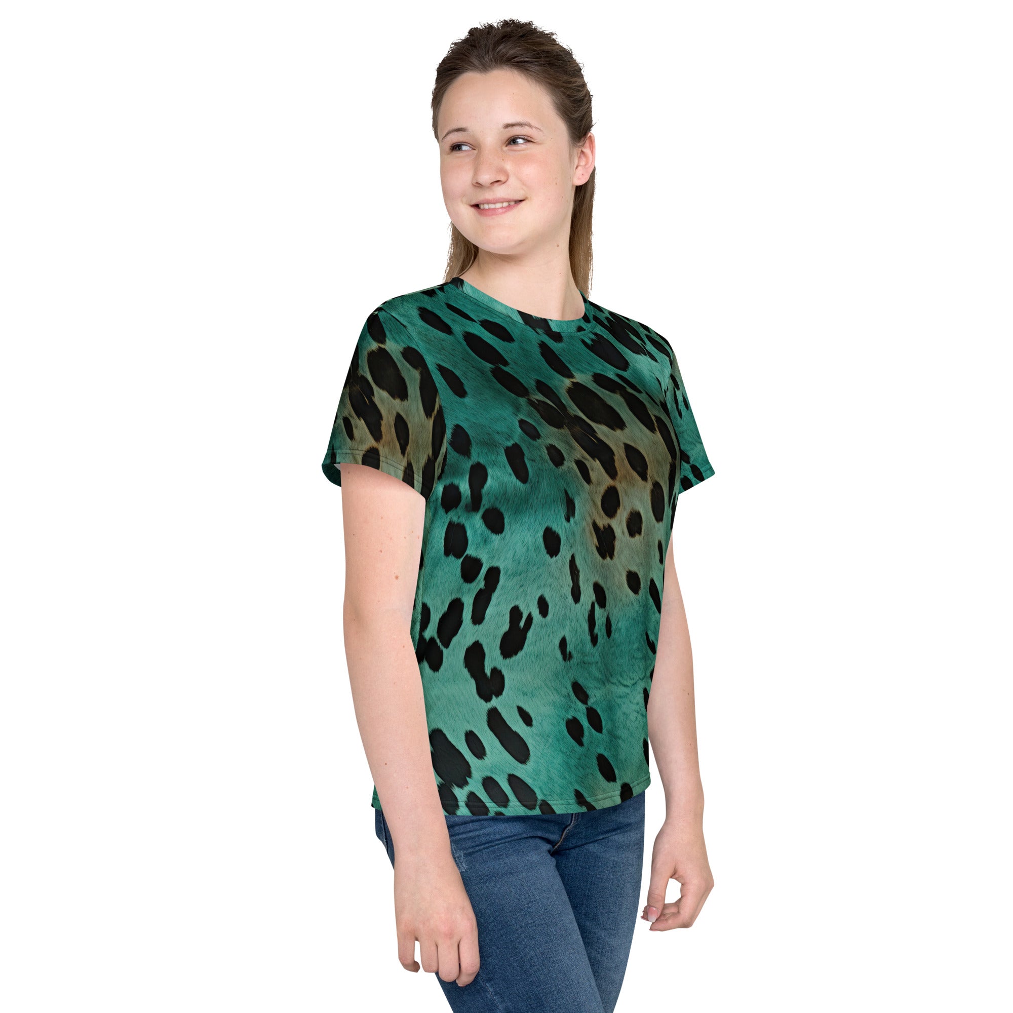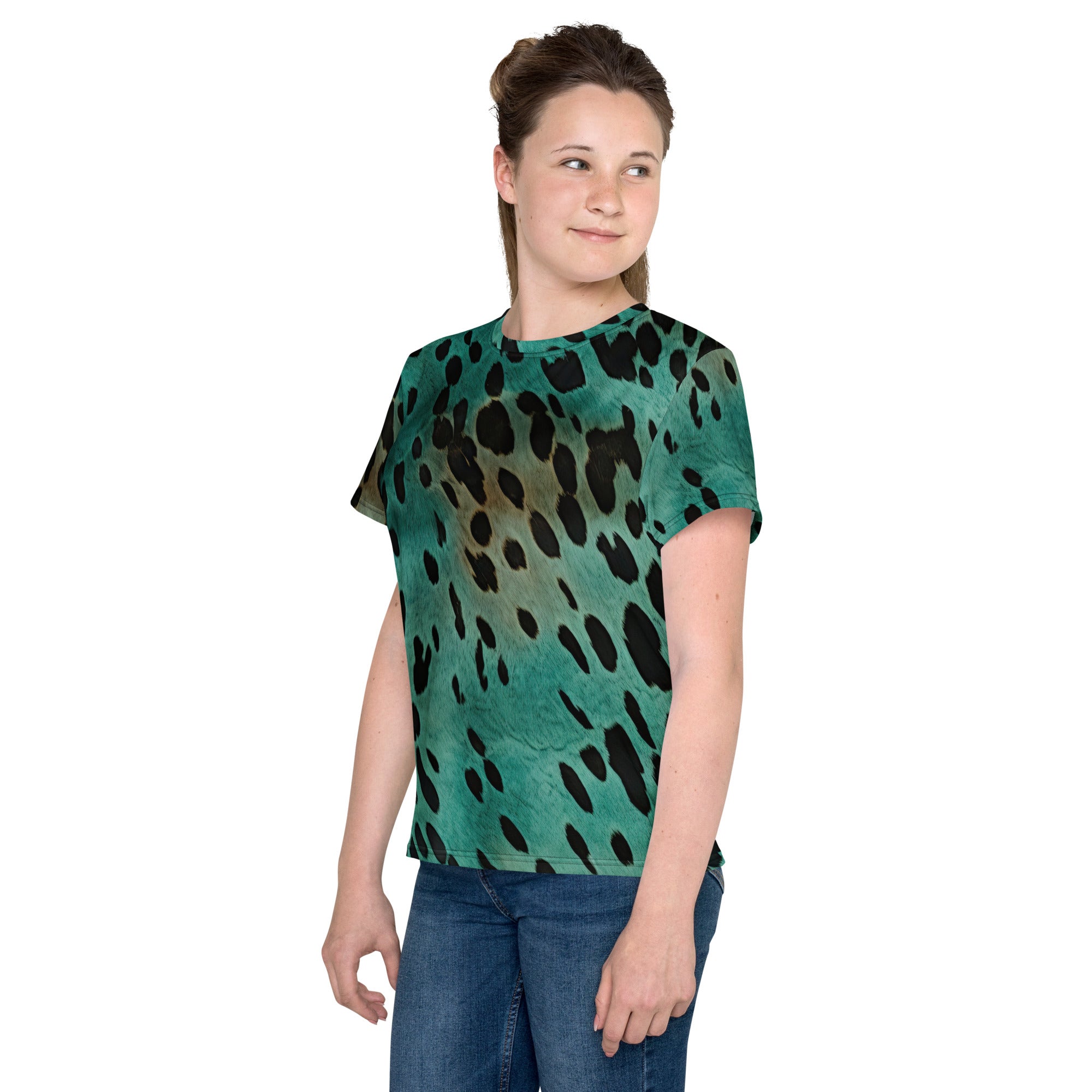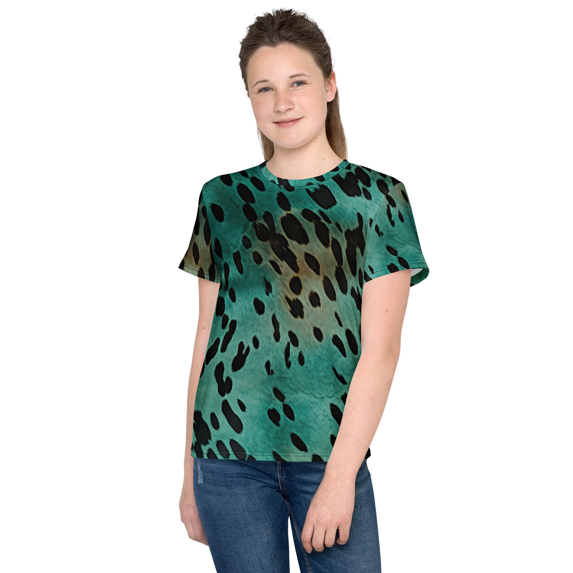 Youth crew neck t-shirt - turquoise print
