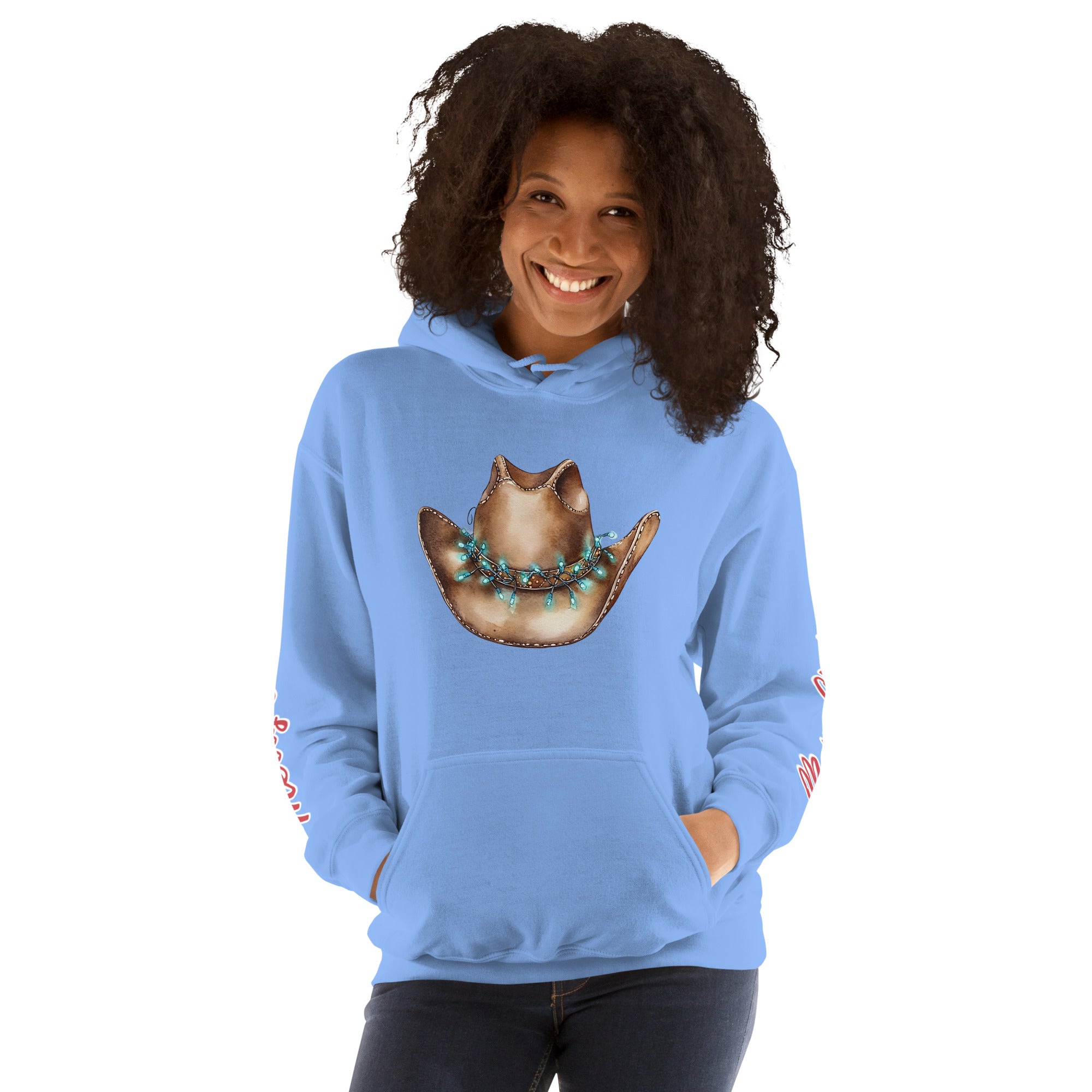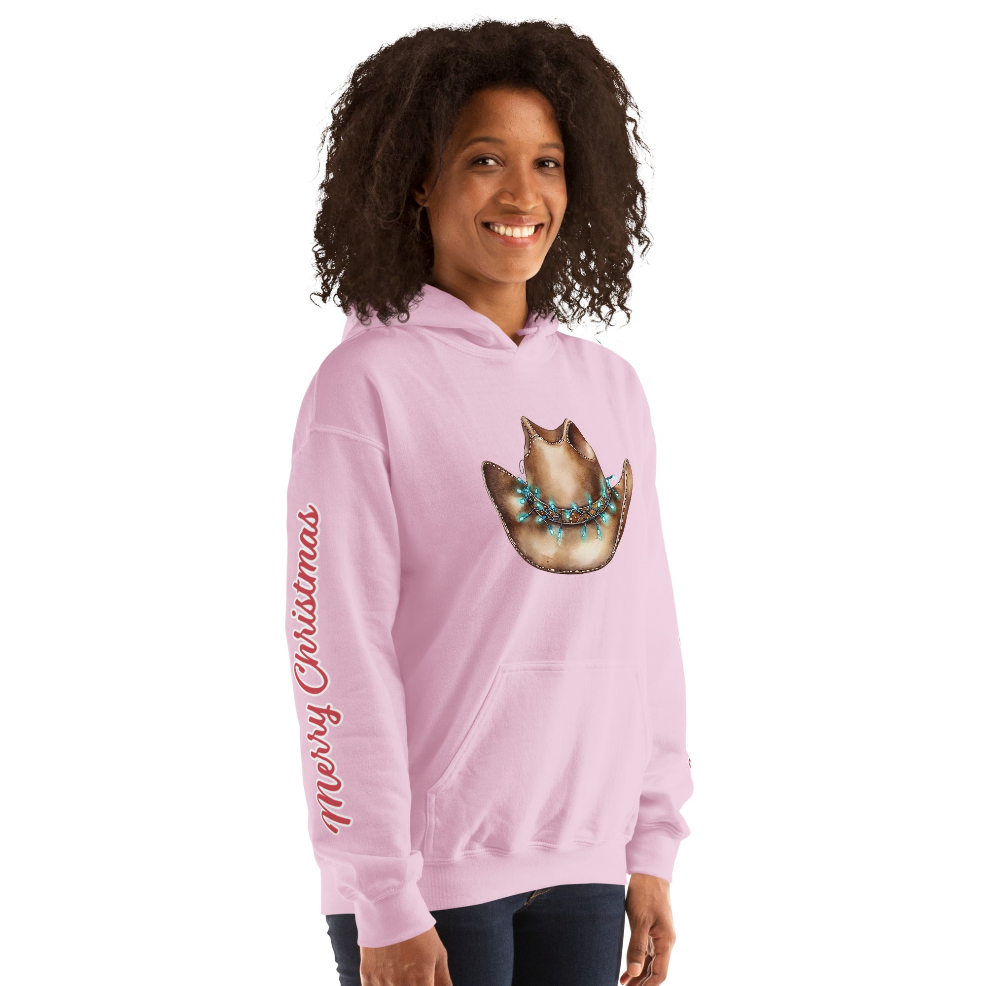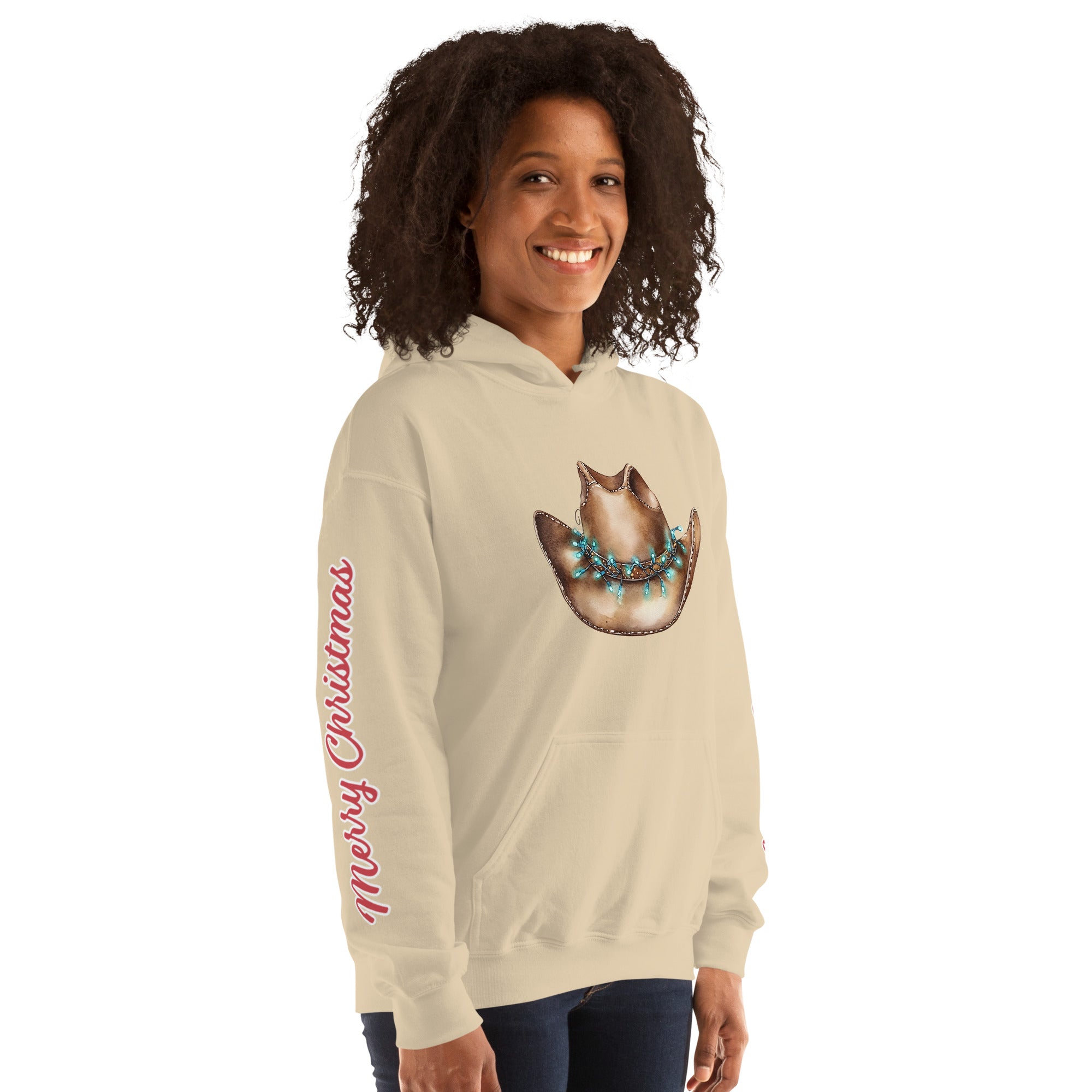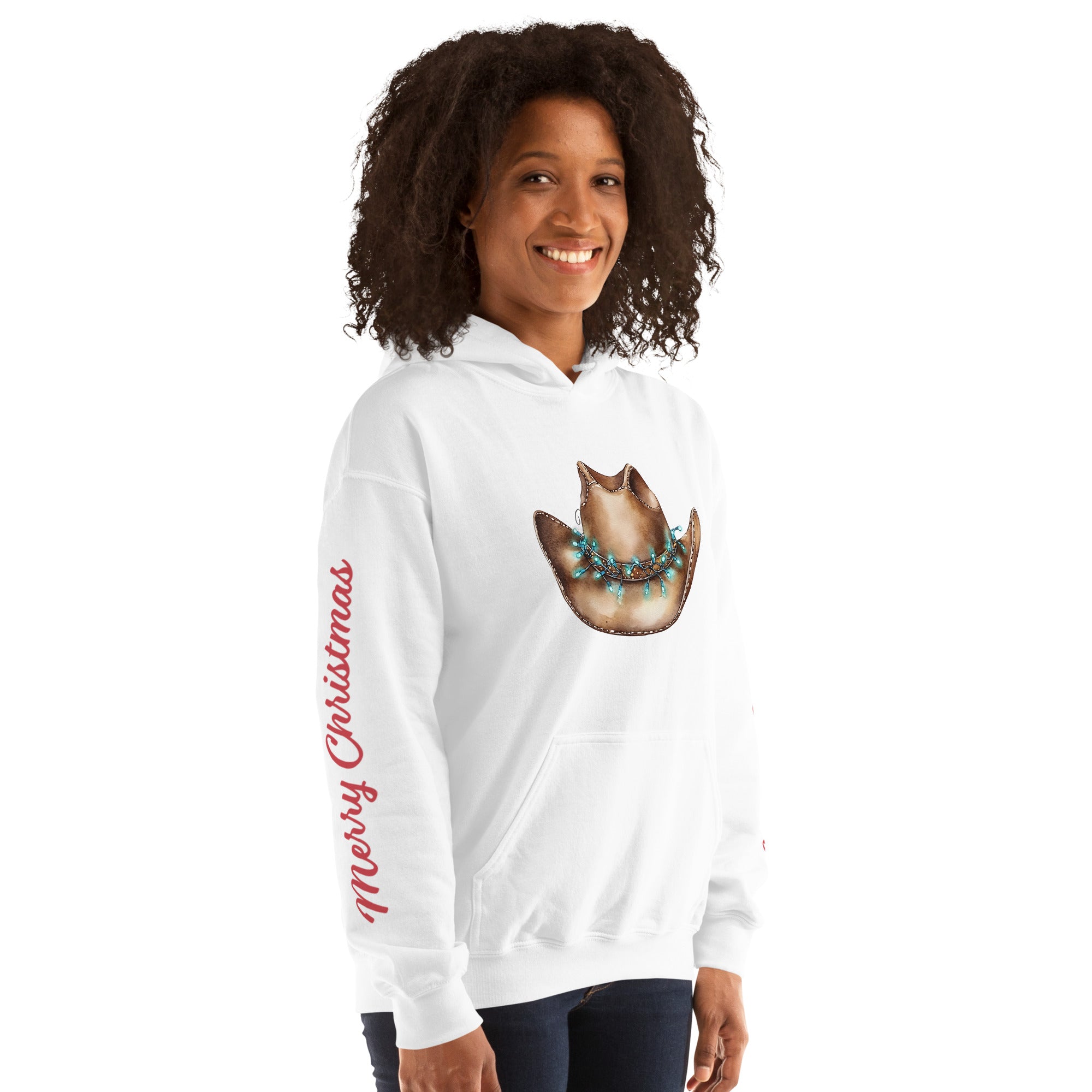 Everyone needs a cozy go-to hoodie to curl up in for the holidays! This “Merry Christmas” western hoodie combines festive charm with rustic cowboy style. The soft, smooth fleece fabric and durable stitching make it perfect for cooler evenings at the barn, trail rides, or holiday gatherings.