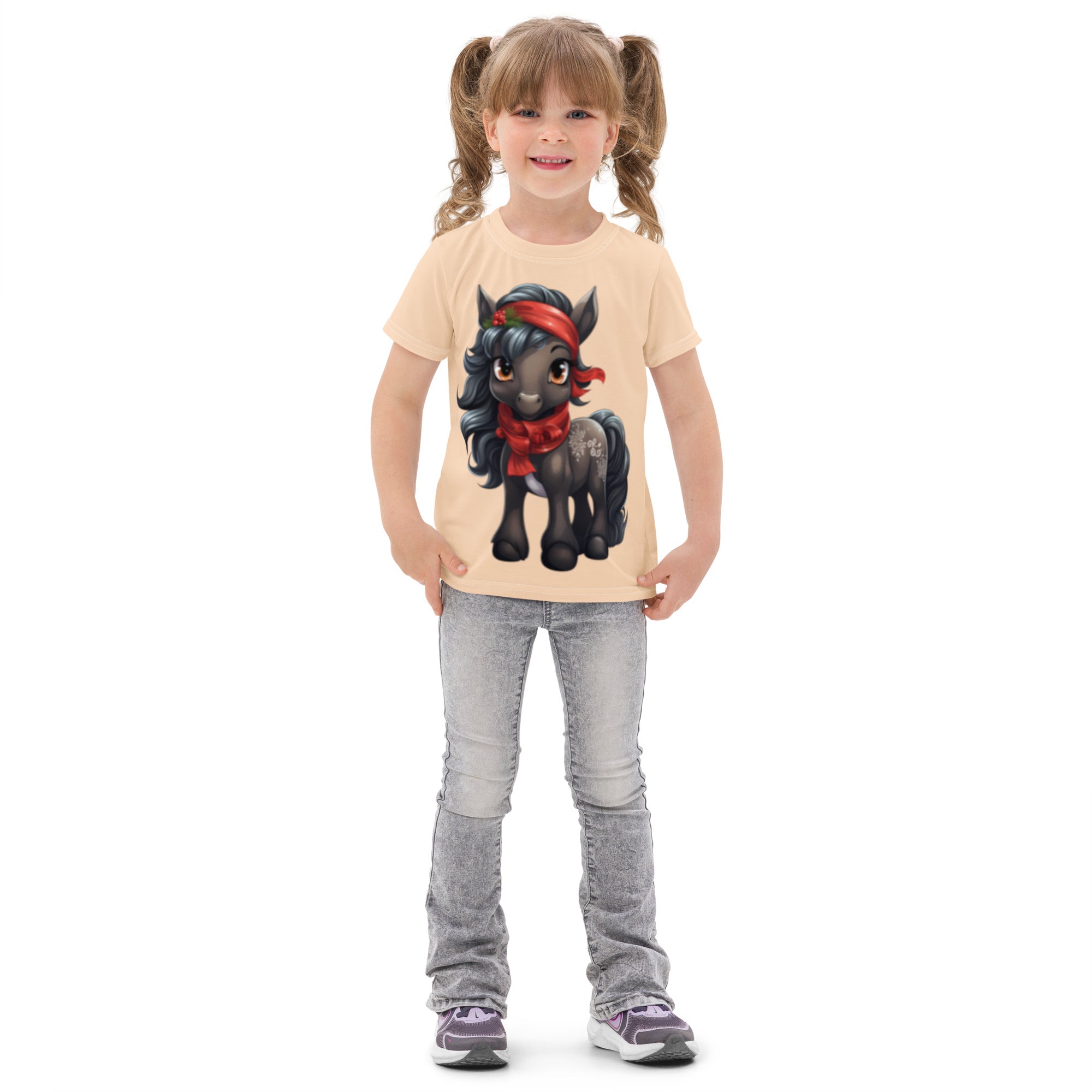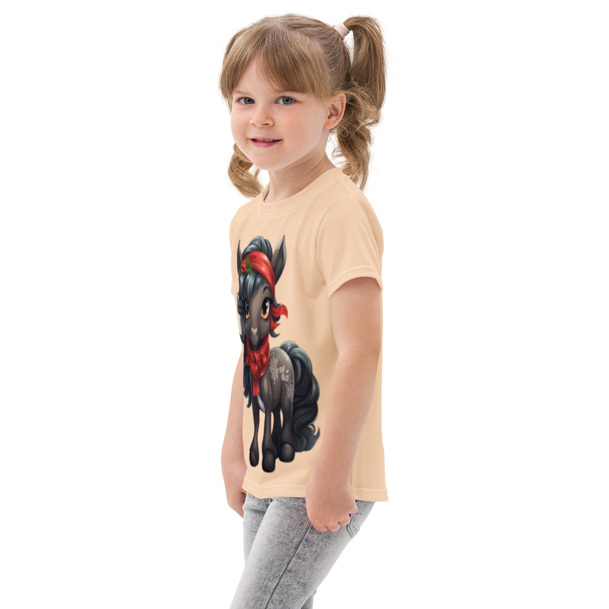 Celebrate the season in cozy style with this adorable Christmas pony t-shirt! Designed for comfort and everyday play, this soft cotton tee keeps kids comfy from morning adventures to bedtime snuggles. The cheerful holiday ponies on the front and back make it a festive favorite they’ll want to wear all December long!